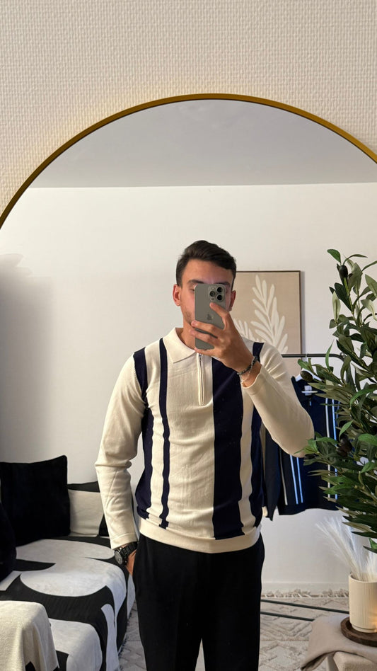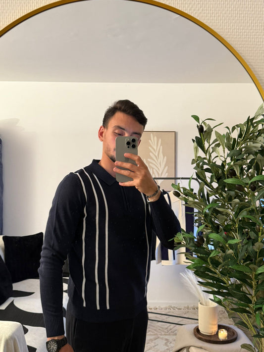 Polo Homme Bleu Marine Élégant à Rayures Blanches