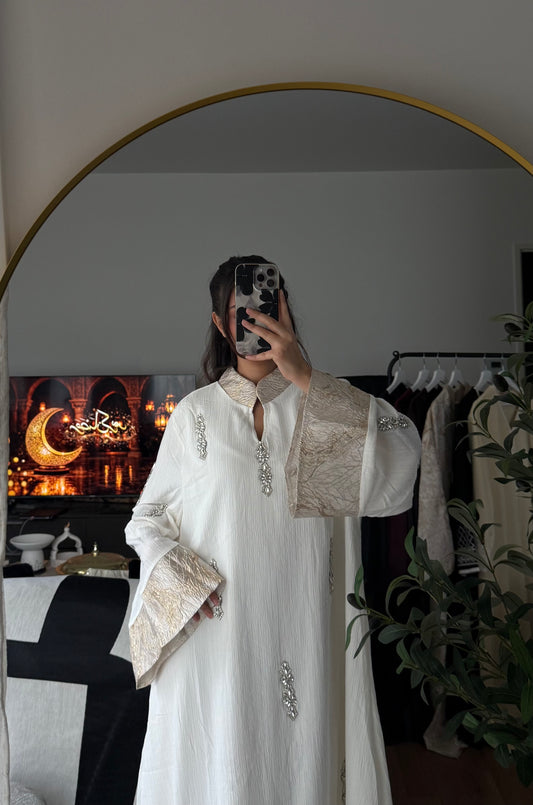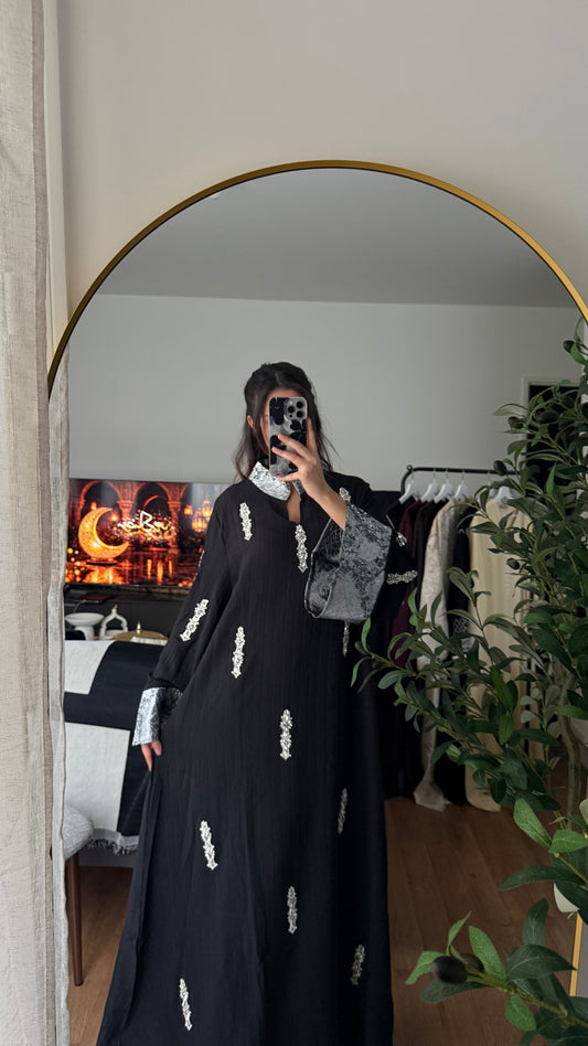ABAYA PREMIUM ORNÉ DE CRISTAUX ET EMPIÈCEMENT BROCARD