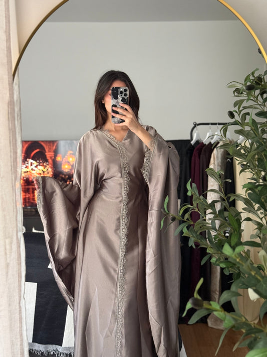 ABAYA PAPILLON À EMPIÈCEMENTS EN DENTELLE Taupe