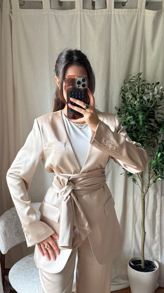 Tailleur Premium Beige Satiné – Blazer & Pantalon & Ceinture