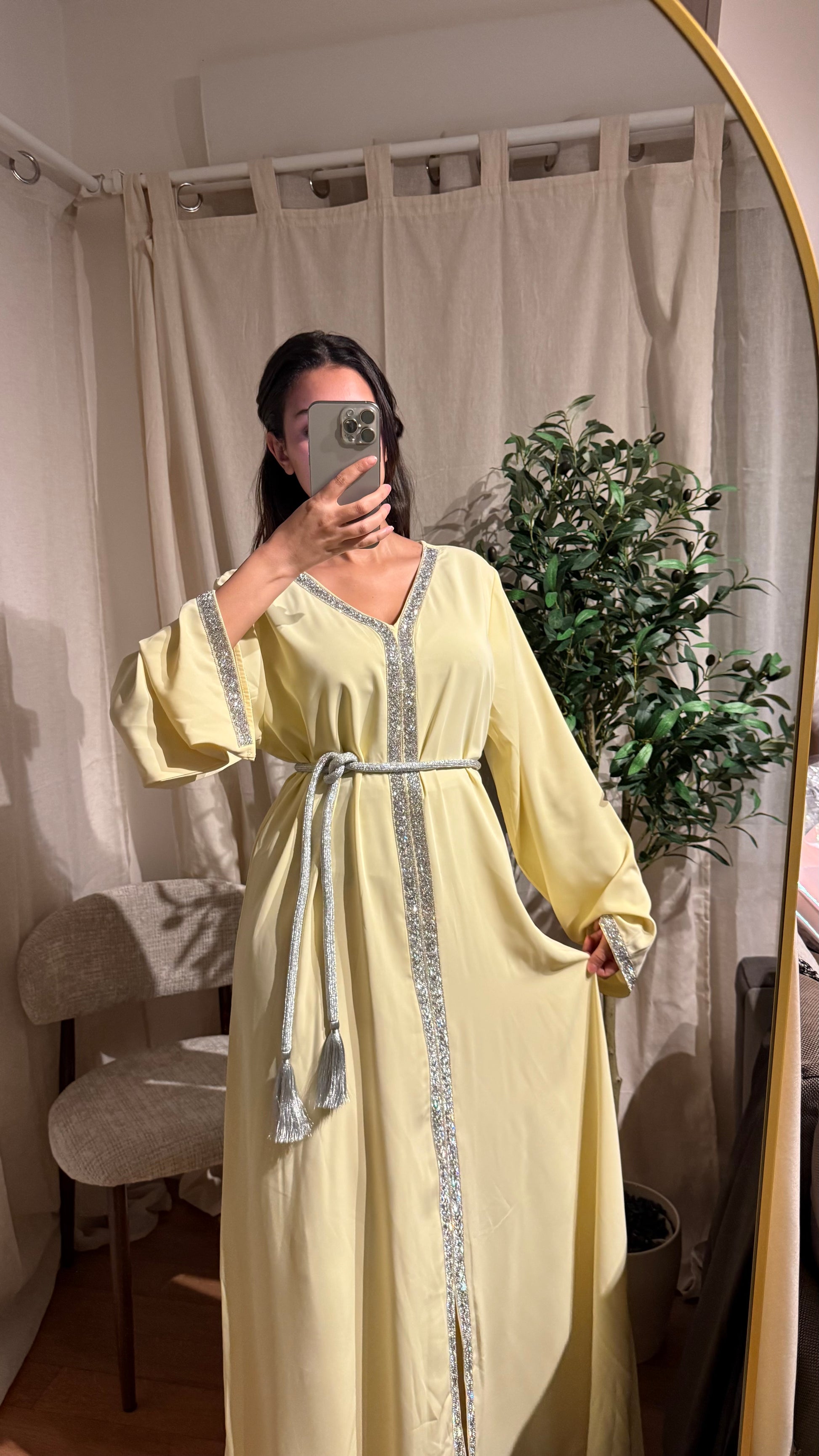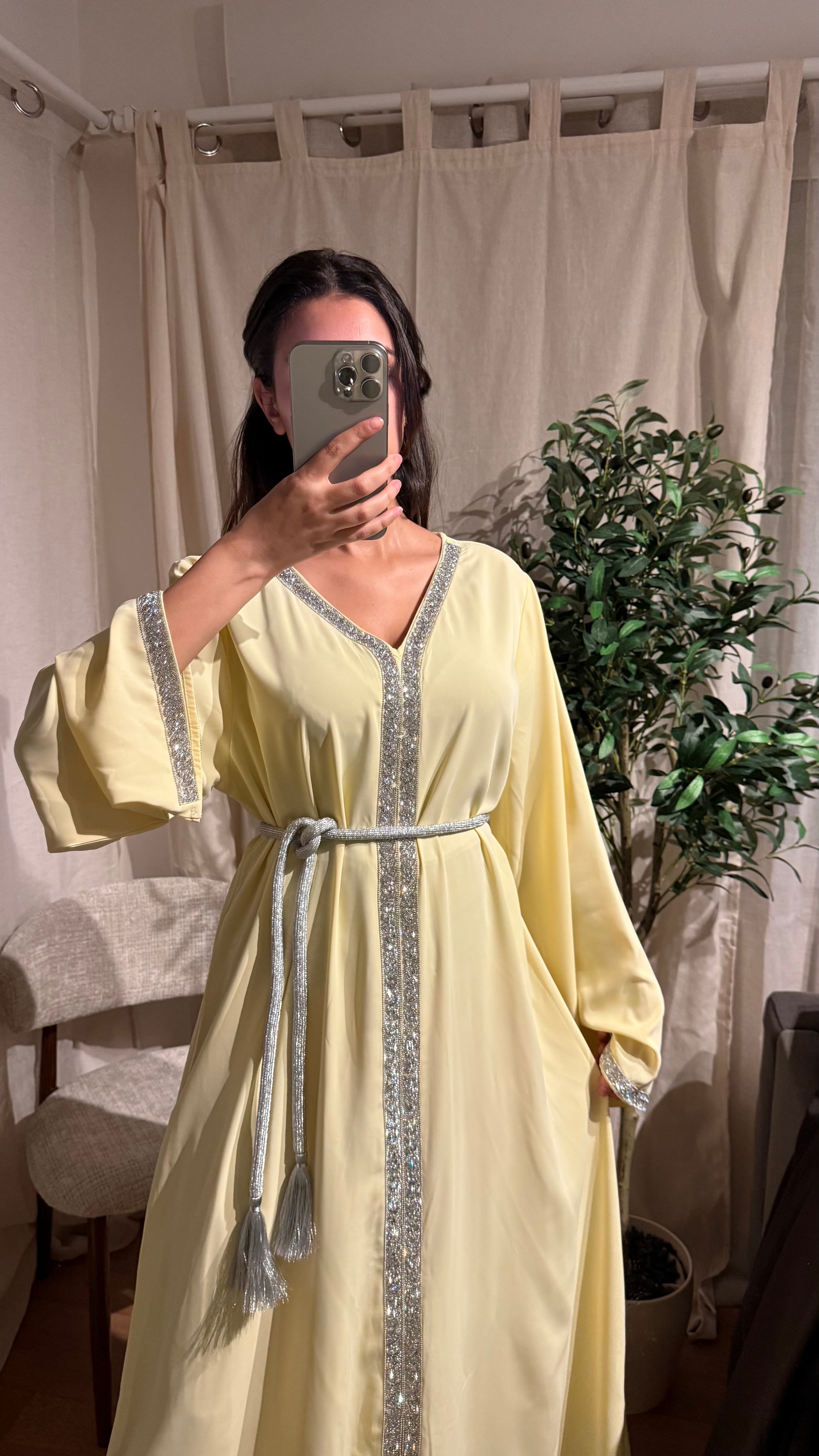 Robe Caftan Amira jaune pale